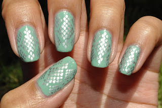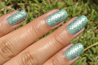 Just like all other Konad plates I have used, the images from Konad M88 came out crisp and picked up easily. The only difficulty I ran into was stamping the images crooked. The image is very curved for a tip design, but I found an easier way to stamp straight. To avoid stamping crooked, I didn't pain the every ends of the image and painted straight across bottom of the U-shape. This way when I picked up the image, it was not so curved and it was easier to center the image on my nails. This image plate is available at Nail Polish Canada along with tons of other Konad stamping products.