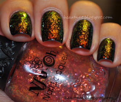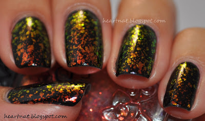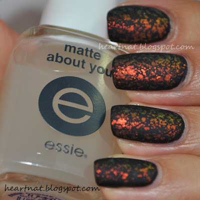 Hi everyone! Short post today. I've been seeing so many flakies lately and I have yet to get my hands on some of the newer ones, so I decided to wear one I have already to satisfy my flakie craving! I used O.P.I. Black Onyx as a base and used one coat of Nfu-Oh #49. I also added one coat of Essie Matte About You to see what it looks like matte. Enjoy!